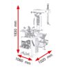 Desmontadora de ruedas semiautomática para motocicletas y scooter. Bloqueo de llantas de 6″ a 24″. Movimiento lateral del brazo porta-útil con bloqueo manual. Cilindro destalonador de doble efecto. Equipamiento profesional para talleres. DISPRONE mejora el conjunto sustituyendo el manómetro de origen por un manómetro schrader eurodainu.